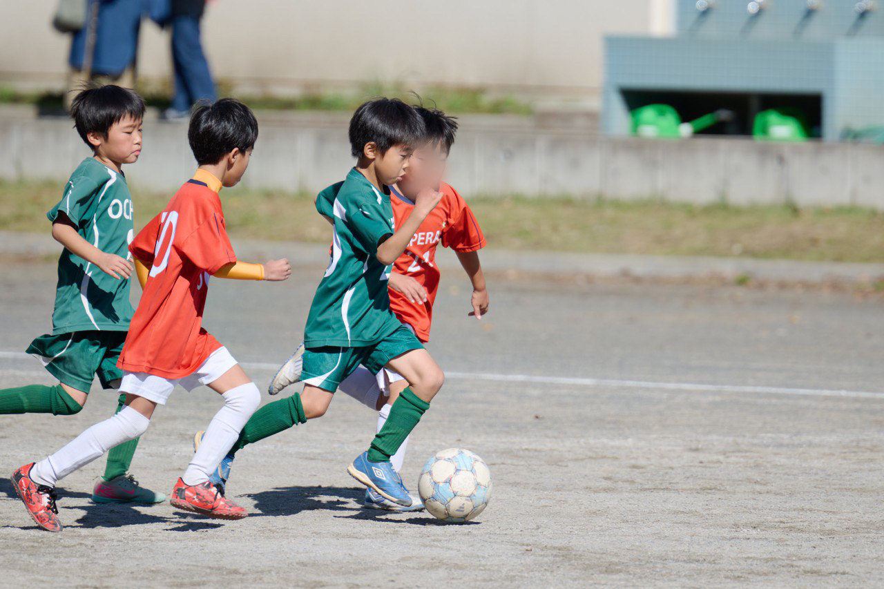 ドリブルでやってやる!強い気持ちで後半に臨む選手達。選手達のドリブル突破を相手チームは嫌がりファールが増え、良い位置でのフリーキックで2点を返すも、惜しくも届きませんでした。